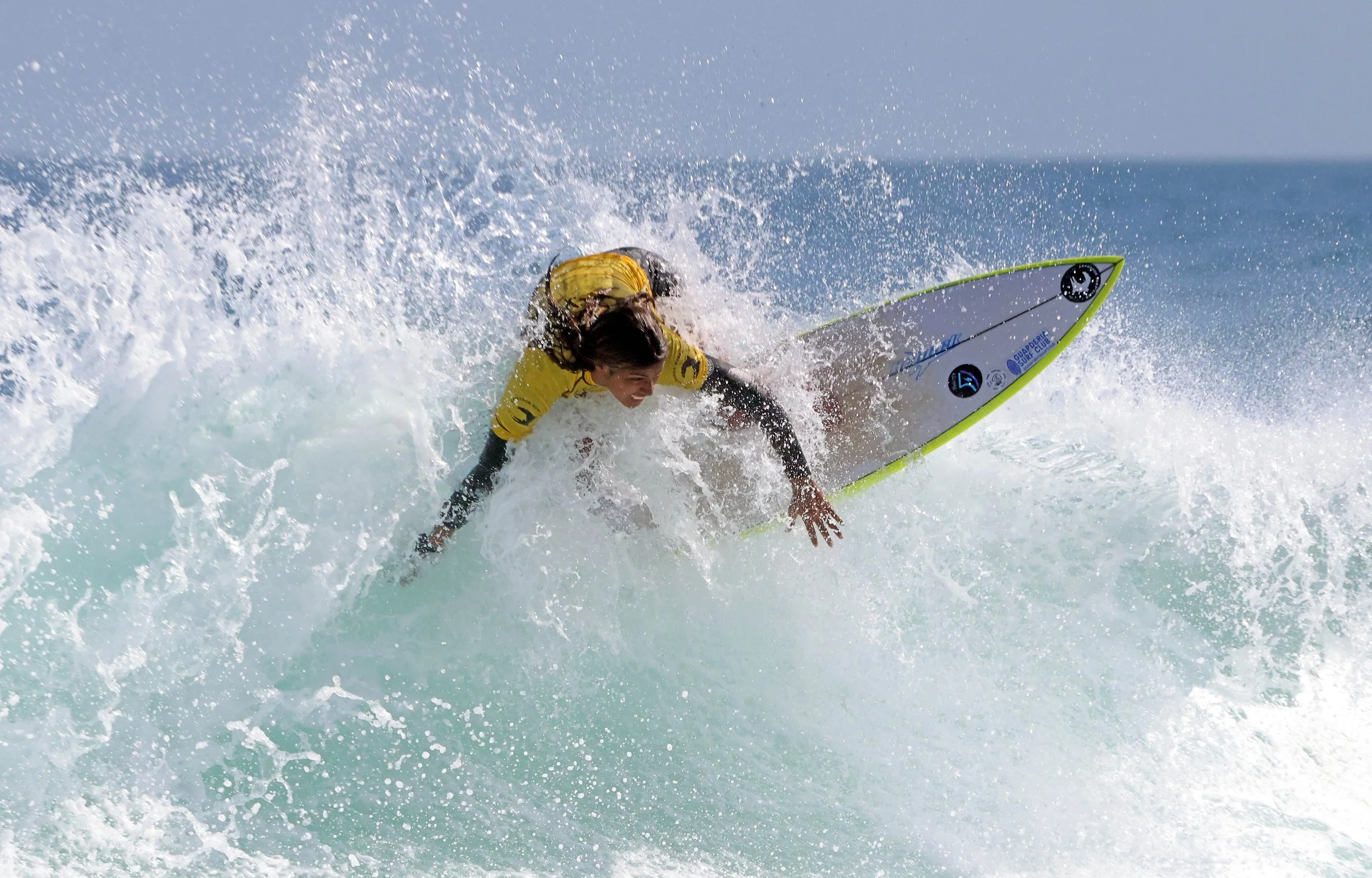 Maria Eduarda carves her way through the waves during the Tyr Energy Circuit Arpoador Surf Club Arpex Groms 2025 competition at Praia do Arpoador in Rio de Janeiro. Maria won the Girls Sub-16 age division during the annual event highlighting emerging talent in Brazil’s junior surf scene. “Groms” is surf slang for young, up-and-coming surfers. Arpoador, considered the birthplace of Brazilian surfing, is an iconic break known for its consistent waves and passionate local surf culture.