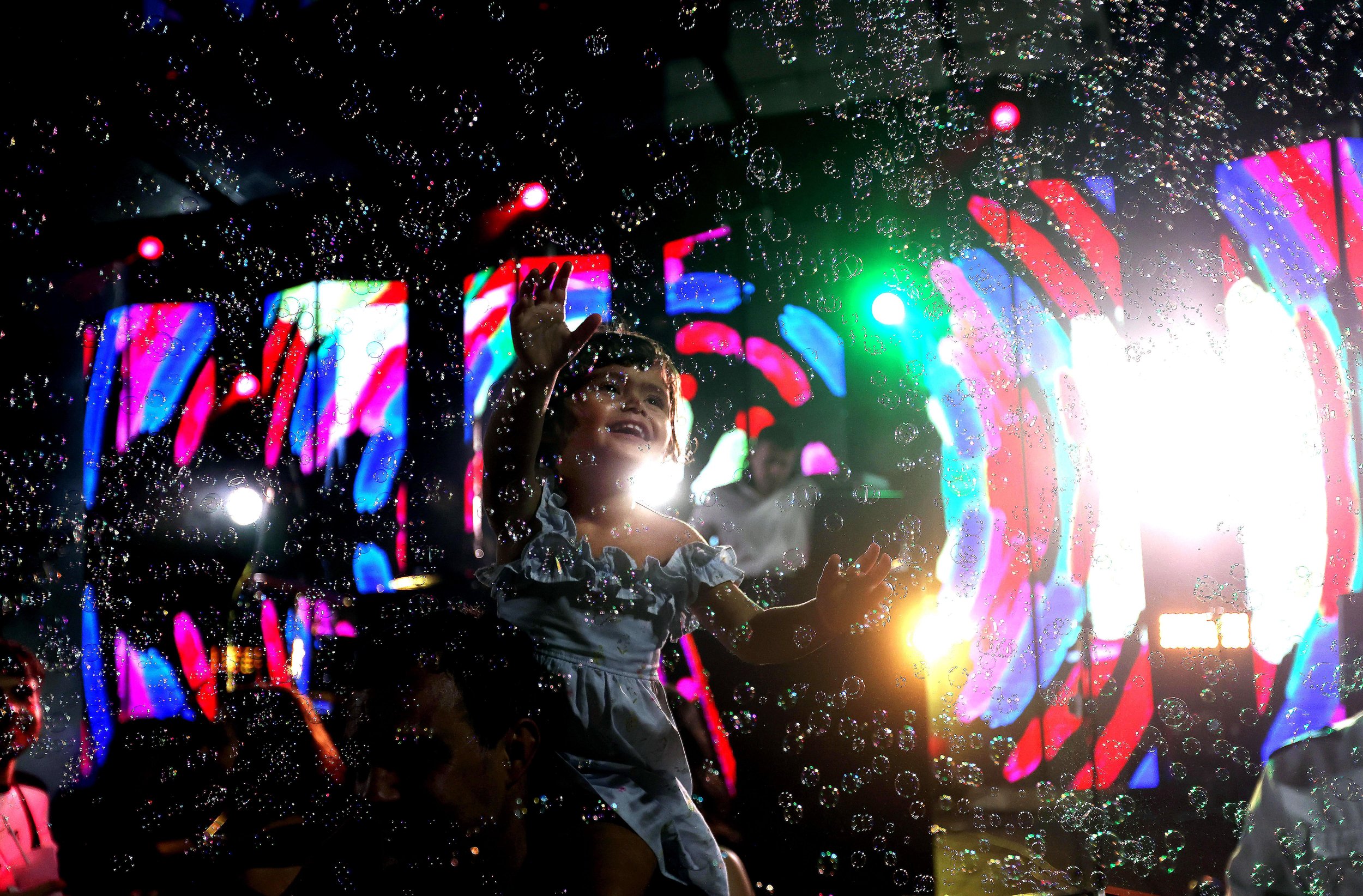December 20, 2025—A child reaches for bubbles as colorful stage lights glow during the sixth edition of the Pici Jazz Festival at Praça Nossa Senhora da Paz, in the Ipanema neighborhood of Rio de Janeiro, Brazil. The three-day open-air event marks the opening of the city’s summer cultural season, bringing together traditional jazz, live performances, gastronomy and art in a celebration designed for audiences of all ages.