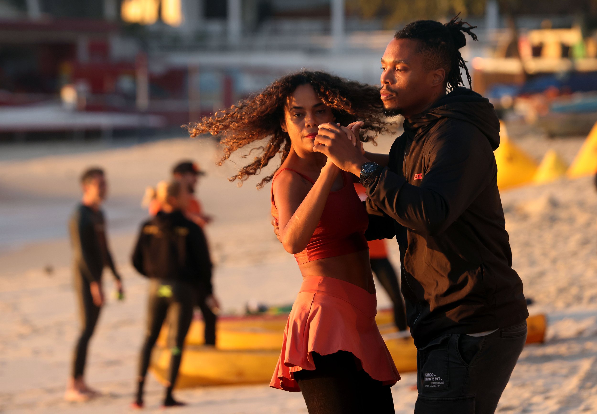 July 5, 2025—TATIANE BISPO and RAPHAEL MEIRA practice forró at sunrise on Copacabana Beach in Rio de Janeiro, moving to the rhythm of the traditional Brazilian dance as the day begins along the iconic shoreline.