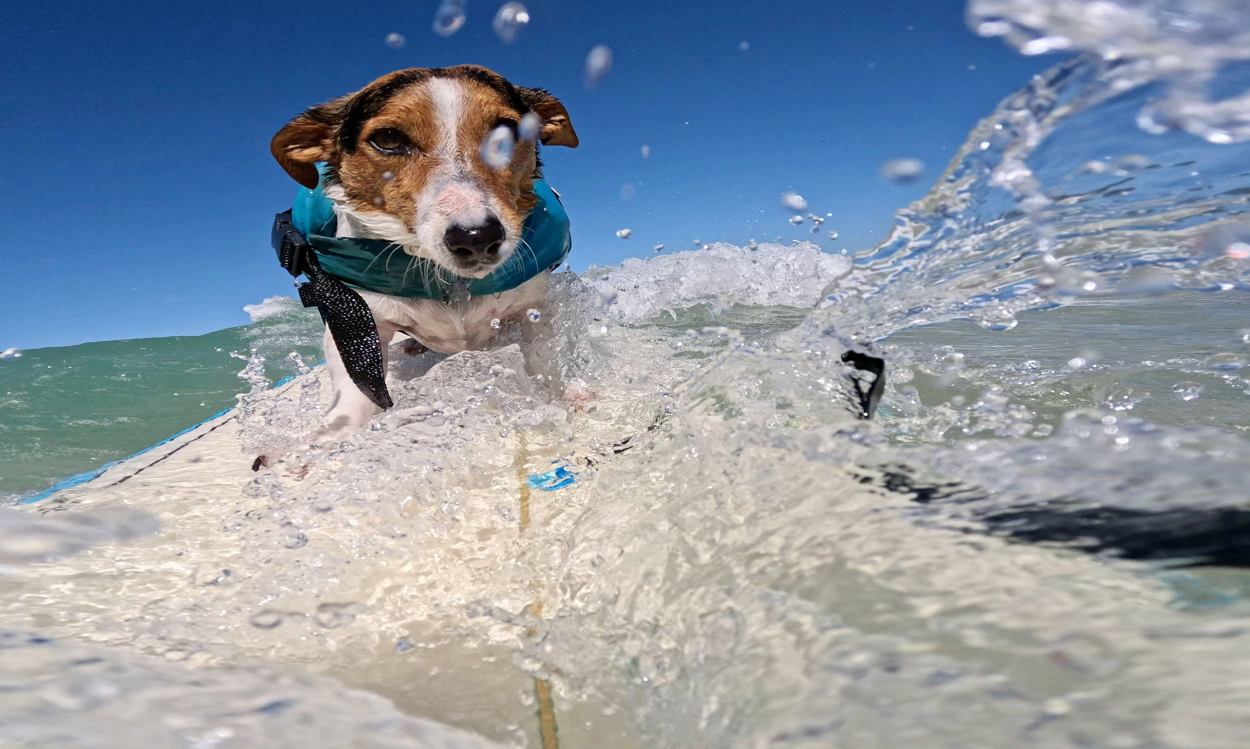September 3, 2025—Five-year-old BENJI, a Jack Russell Terrier, rides the waves at Arpoador Beach in Rio de Janeiro. Since catching his first wave two years ago, Benji has become a beloved fixture on Rio’s iconic shore, charming both beachgoers and seasoned surfers with his impressive skills.