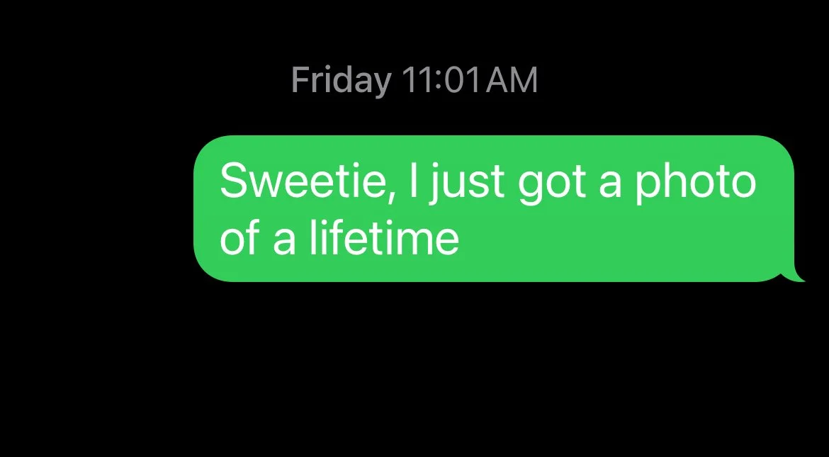 I texted my wife Claudia immediately: “Sweetie, I just got a photo of a lifetime.”