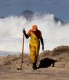Rio de Janeiro Municipal cleaning crews from Comlurb were dispatched to help clean up the aftermath of a powerful winter storm that sent ocean waves surging over the beach in a rare storm surge event