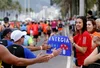 Runners touch a sign saying ‘Energy Here’ as they pass through Ipanema during the 2025 Rio de Janeiro Marathon on Sunday, June 22. With a course that showcases Rio’s stunning coastline